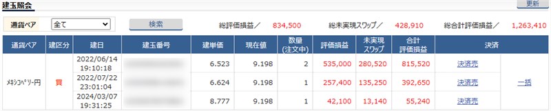 最近は、SBI証券よりもスワップポイントが高いヒロセ通商でもメキシコペソを運用し始めました。