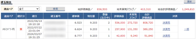 最近は、SBI証券よりもスワップポイントが高いヒロセ通商でもメキシコペソを運用し始めました。