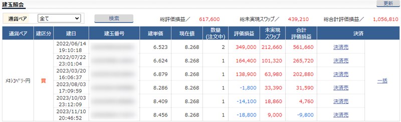 最近は、SBI証券よりもスワップポイントが高いヒロセ通商でもメキシコペソを運用し始めました。