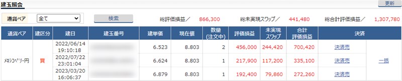 最近は、SBI証券よりもスワップポイントが高いヒロセ通商でもメキシコペソを運用し始めました。