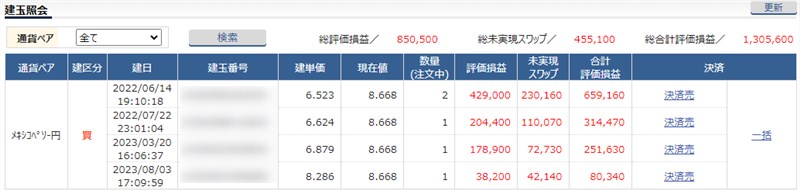 最近は、SBI証券よりもスワップポイントが高いヒロセ通商でもメキシコペソを運用し始めました。