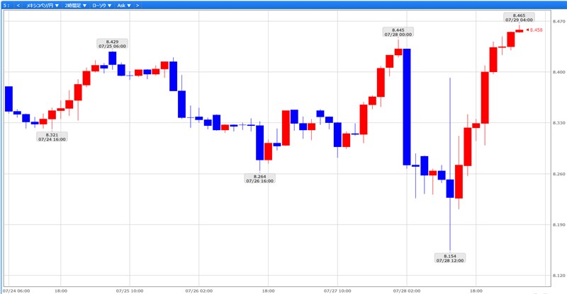 メキシコペソですが、今週はFOMCやら日銀金融政策決定会合があったせいか「行って来い」がすごかったですね。