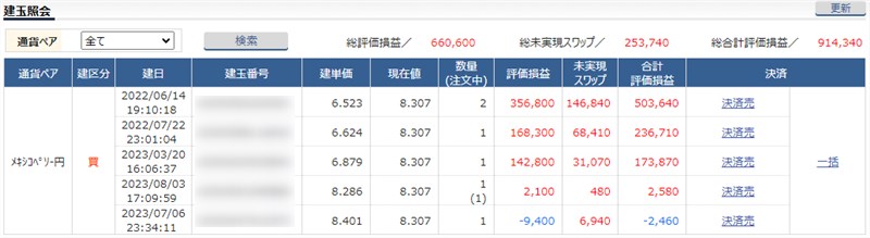 最近は、SBI証券よりもスワップポイントが高いヒロセ通商でもメキシコペソを運用し始めました。