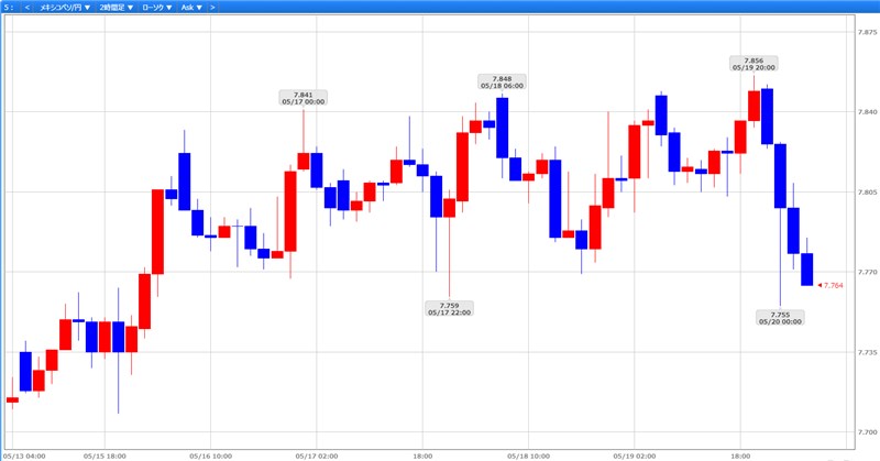 メキシコペソがグングン上昇中でしたが、今週はいったん一休みといった感じでしたね。