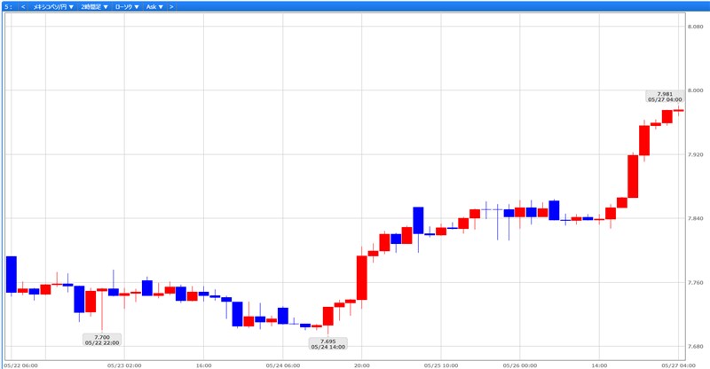 5本ペソを保持していたので、1,750×5=8,750円の利益です!