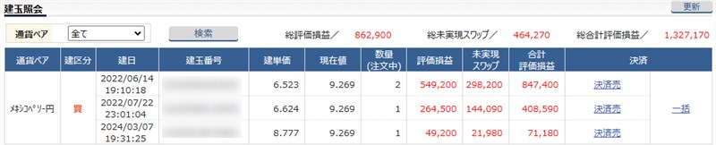最近は、SBI証券よりもスワップポイントが高いヒロセ通商でもメキシコペソを運用し始めました。
