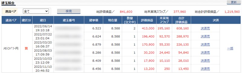 最近は、SBI証券よりもスワップポイントが高いヒロセ通商でもメキシコペソを運用し始めました。