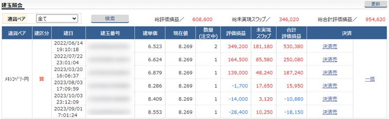 最近は、SBI証券よりもスワップポイントが高いヒロセ通商でもメキシコペソを運用し始めました。