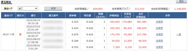 最近は、SBI証券よりもスワップポイントが高いヒロセ通商でもメキシコペソを運用し始めました。