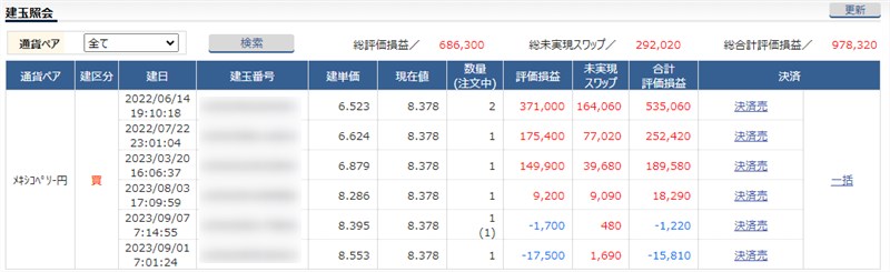 最近は、SBI証券よりもスワップポイントが高いヒロセ通商でもメキシコペソを運用し始めました。