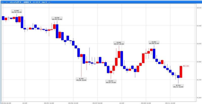 メキシコペソですが、さすがに9月になったのでジリジリと下がってきました。